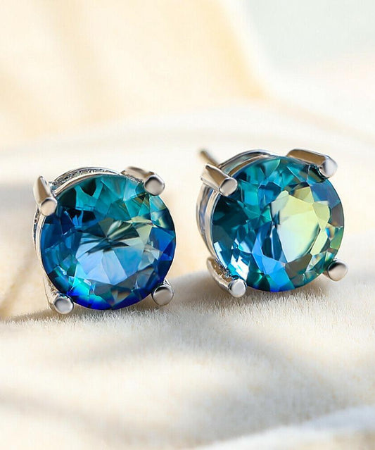 1.25ct Round Cut Aquamarine Stud Earrings Bi Color With Crystals in 18K White Gold Plated