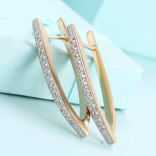 1.4" Pave Thin Pave Hoop Earring in 18K Champagne Gold Plated with Crystals