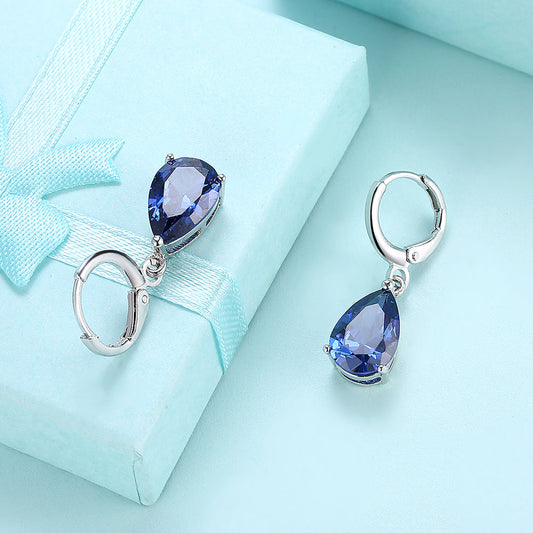 1.50 Ct Sapphire Pear Cut Drop Earring in 18K White Gold Plated