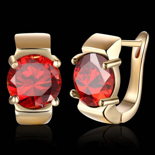 1.00 Ct Ruby Round Cut Huggie Earring in 18K Gold Plated