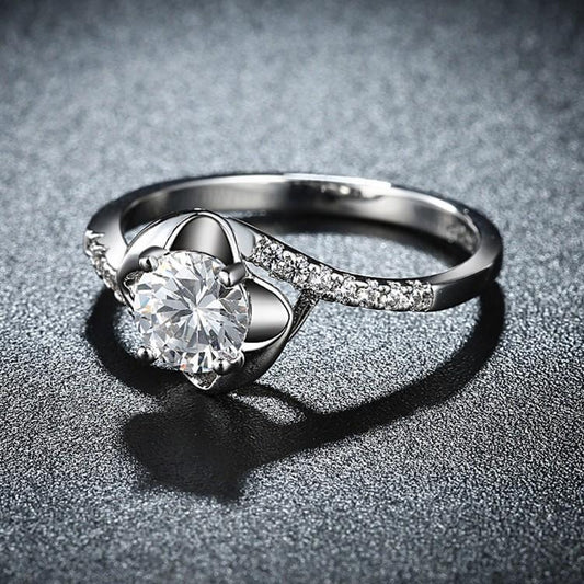 1.00 CTTW Engagement Cut Floral White Crystal Pav'e Ring