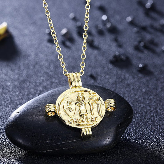 14K Gold Plating Ceaser Palace Medallion Pendant Necklace