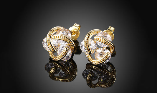 14K Gold Plating Elements Twisted 3-Stone Stud Earrings- Options Available