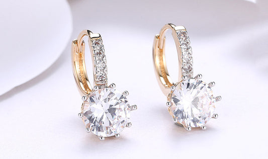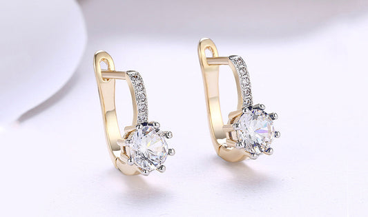 14K Gold Plating Elements Starburst Leverback Pav'e Clip On Earrings