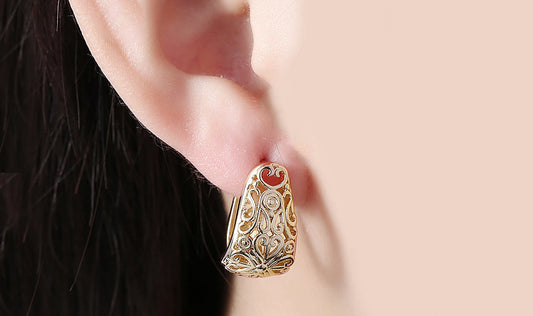 14K Gold Plating Filigree Laser Cut Clip On Earrings