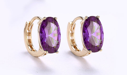 14K Gold Plating Large Diamond Cut Gemstone Clip On Earrings- Two Options Available