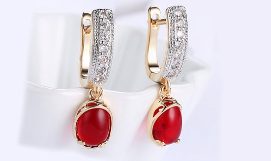 14K Gold Plating Sleek Gemstone Pear Cut Drop Earrings - 3 Options Available