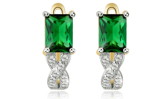 14K Gold Plating Emerald Cut Green Elements Twisted Pav'e Lever back Earrings