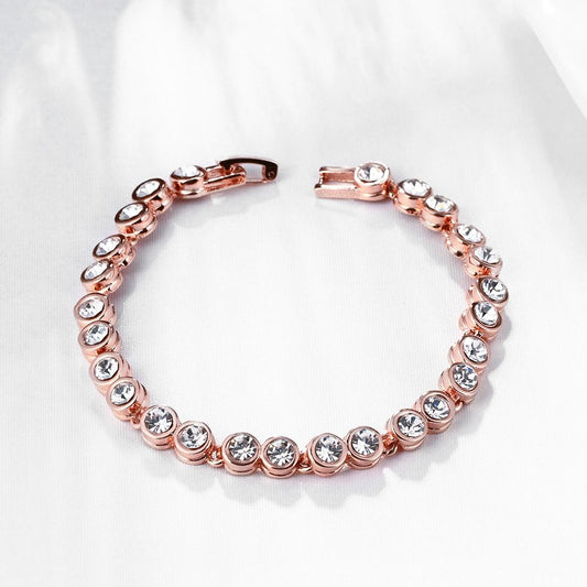 6.00 CT White Topaz Crystal 3mm Classic Round Tennis Bracelet - Rose Gold
