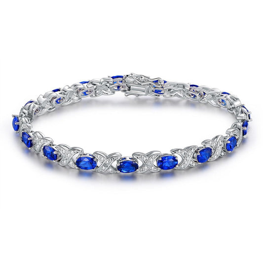 Lab-Created Blue Sapphire and Diamond Accent Tennis Bracelet