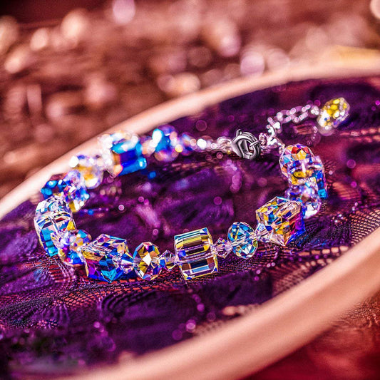 Stunning Aurora Borealis Geometric Shaped Bracelet in 18K White Gold Plating