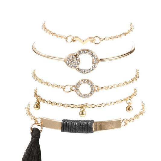 Black Tassel Pav'e 5 Piece Bracelet Set
