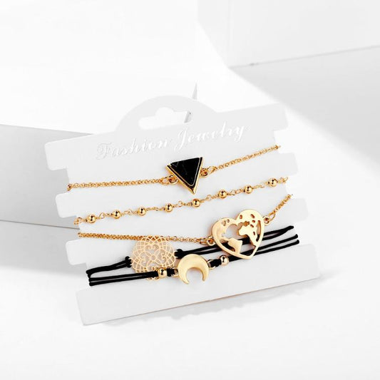 Black Marble Pyramid Celestial Circular 5 Piece Bracelet Set