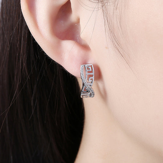 Greek Design Leverback Earring in 18K White Gold Plated with Crystals