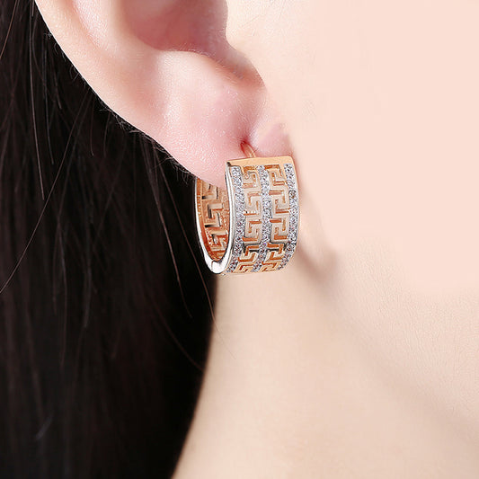 Greek Design Leverback Earring in 18K Gold Plated with Crystals