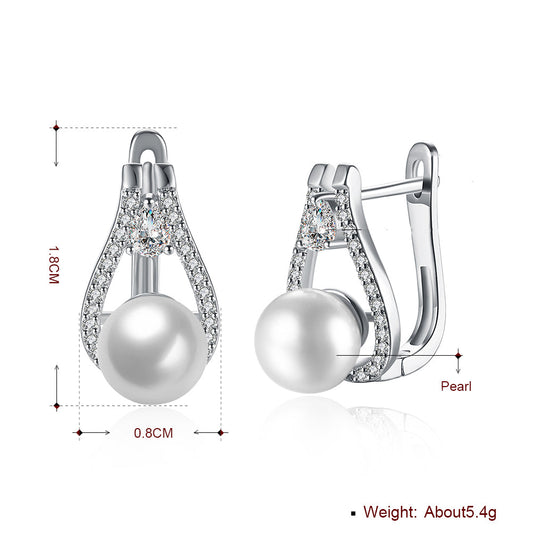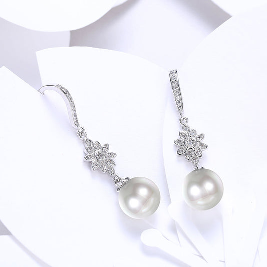 Freshwater Pearl Drop Earring in 18K White Gold Plated with Crystals