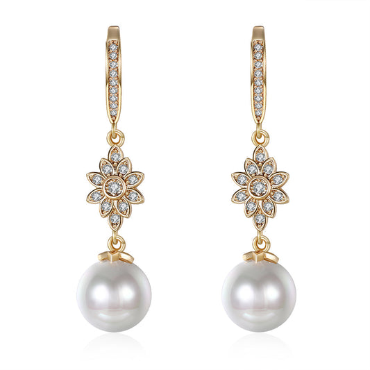 Freshwater Pearl Starburst Drop Earring in 18K Gold Plated with Crystals