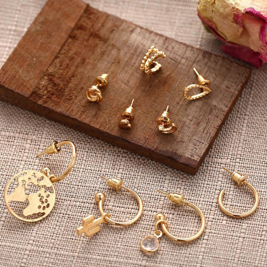 9 Piece Earring Set 18K Gold Plated Earring in 18K Gold Plated