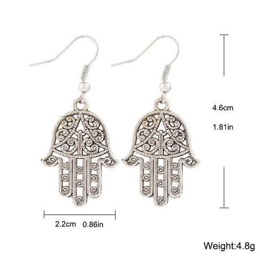 Hamsa Drop Earring 18K White Gold Plated Earring in 18K White Gold Plated