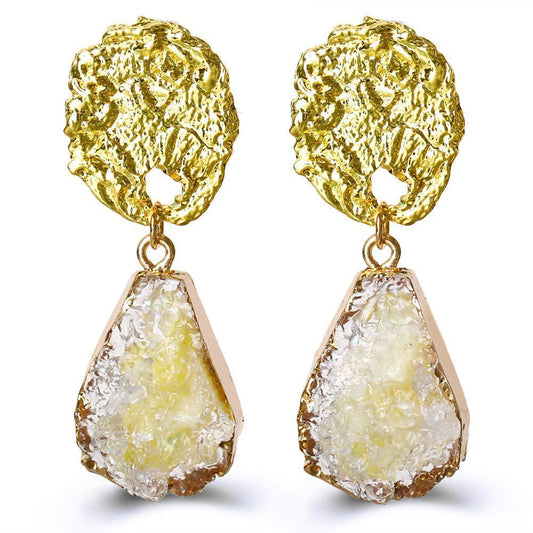Glass Stone Drop Earring - Yellow 18K Gold Plated Earring in 18K Gold Plated