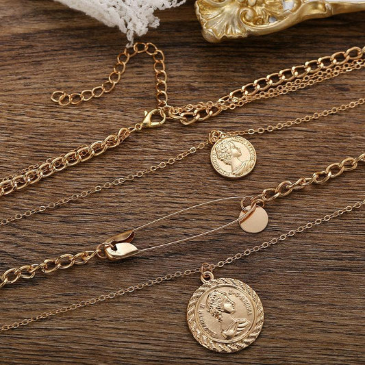 3 Piece Coin and Pin 18K Gold Plated Necklace in 18K Gold Plated