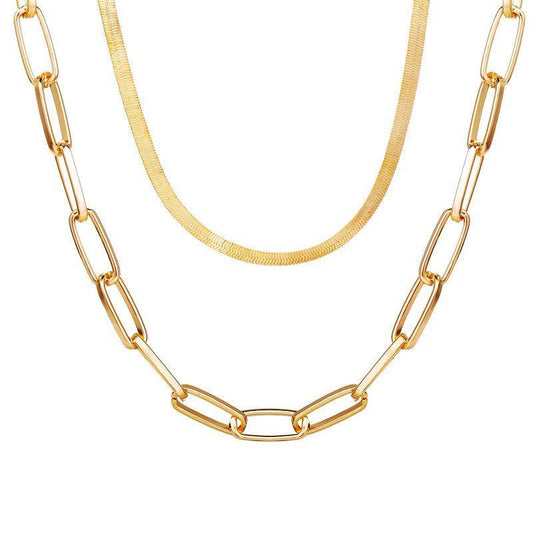 Omega and Paperclip 2 Piece Layer 18K Gold Plated Necklace in 18K Gold Plated