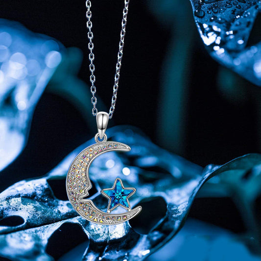 Aurora Borealis Stars & Moon Pav'e Pendant Necklace in 14K White Gold