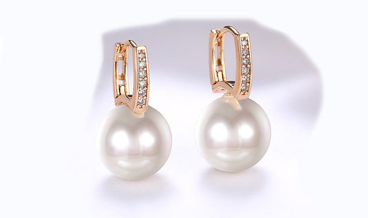 Freshwater Pearl Elements Pav'e Clip On Earrings in 14K Gold Plating
