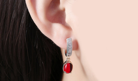Red Stone Classic Resin Drop Earring in 18K Gold Plated