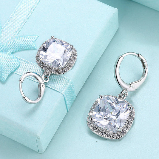 3.00 Ct Asscher Cut Halo Drop Earring in 18K White Gold Plated