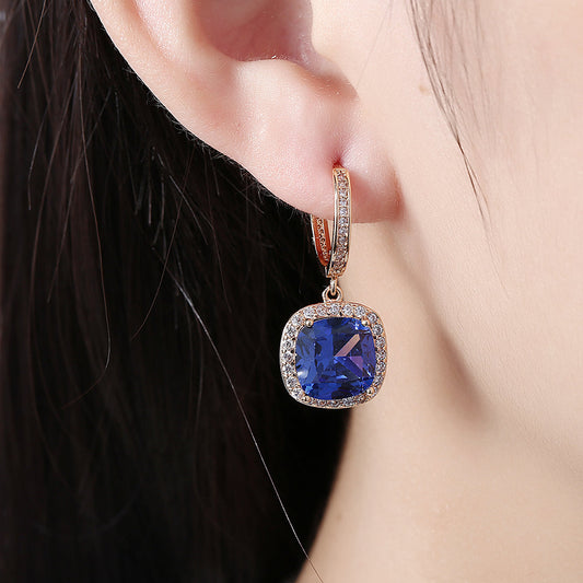 3.00 Ct Sapphire Asscher Cut Halo Drop Earring in 18K Gold Plated