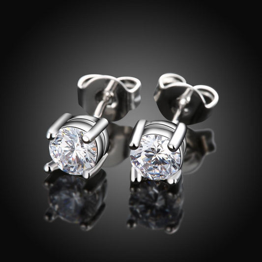 Crystal Stud Earring in 14K White Gold Plated 6mm