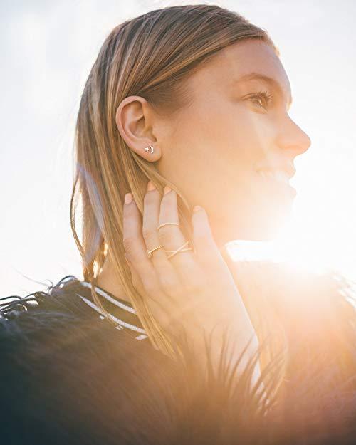6mm Pave Cresent Stud Earring with Crystals - 14K Rose Gold Plated