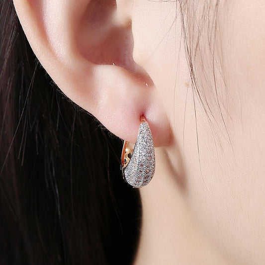 26 Stone Teardrop Pave Huggie Earringin 18K White Gold Plated