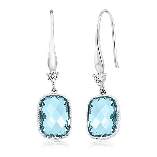 Blue Topaz Diamond Cut Drop Earringin 18K White Gold Plated