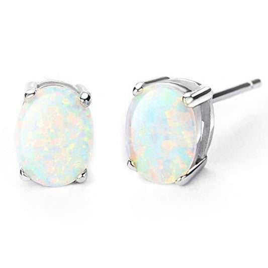 3.00 CT Oval Cut Opal Stud Earring in 18K White Gold Plated