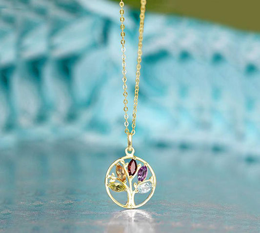 Motherly Rainbow Tree Of Life Necklace in 18K Gold Plated