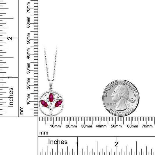 Motherly 2.00 CT Ruby Pear Cut Tree Of Life Necklace in 18K White Gold Plated