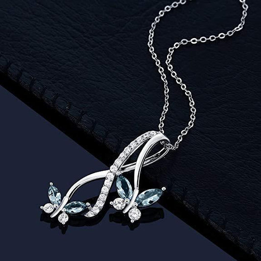 Mother and Child Butterfly Blue Topaz Necklace in 18K White Gold Plated