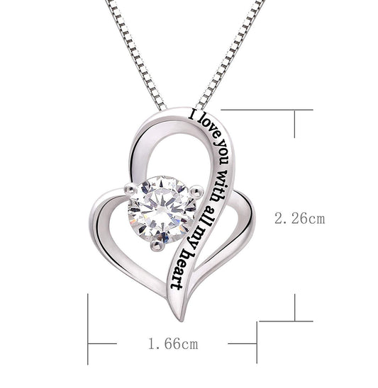 I Love you with all my heart Heart Necklace in 18K White Gold Plated
