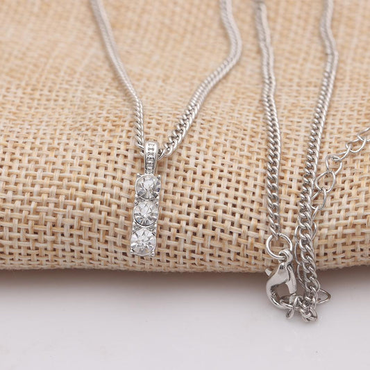 3.00 CT Triple Stone Drop White Topaz Necklace in 18K White Gold Plated