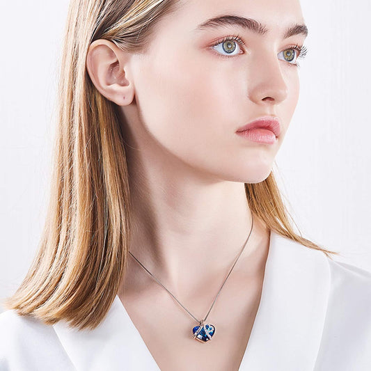 I LOVE YOU FOREVER Blue Crystal Heart Necklace & Gift Box in 18K White Gold Plated