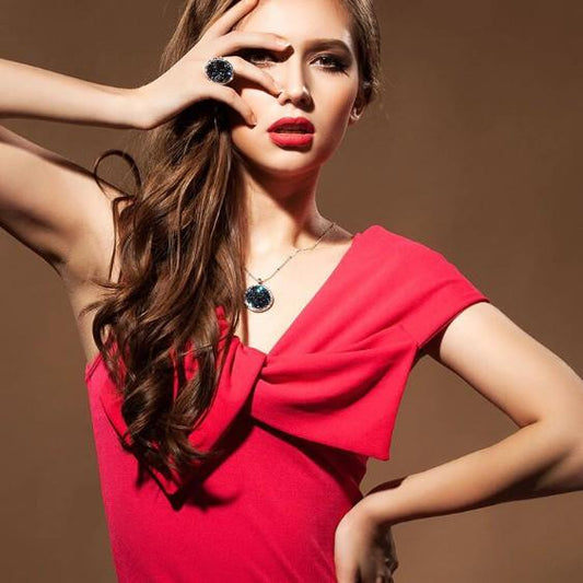 Crystal Double Heart Necklace in 18K Rose Gold Plated