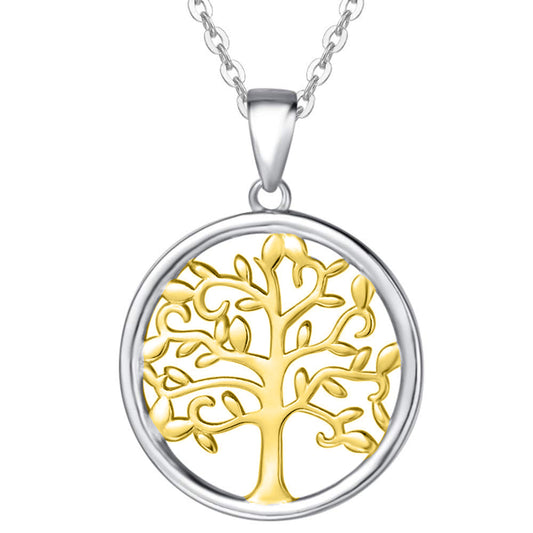 14K Gold Plating Multi Crystal Rainbow Tree of Life Pendant Necklace